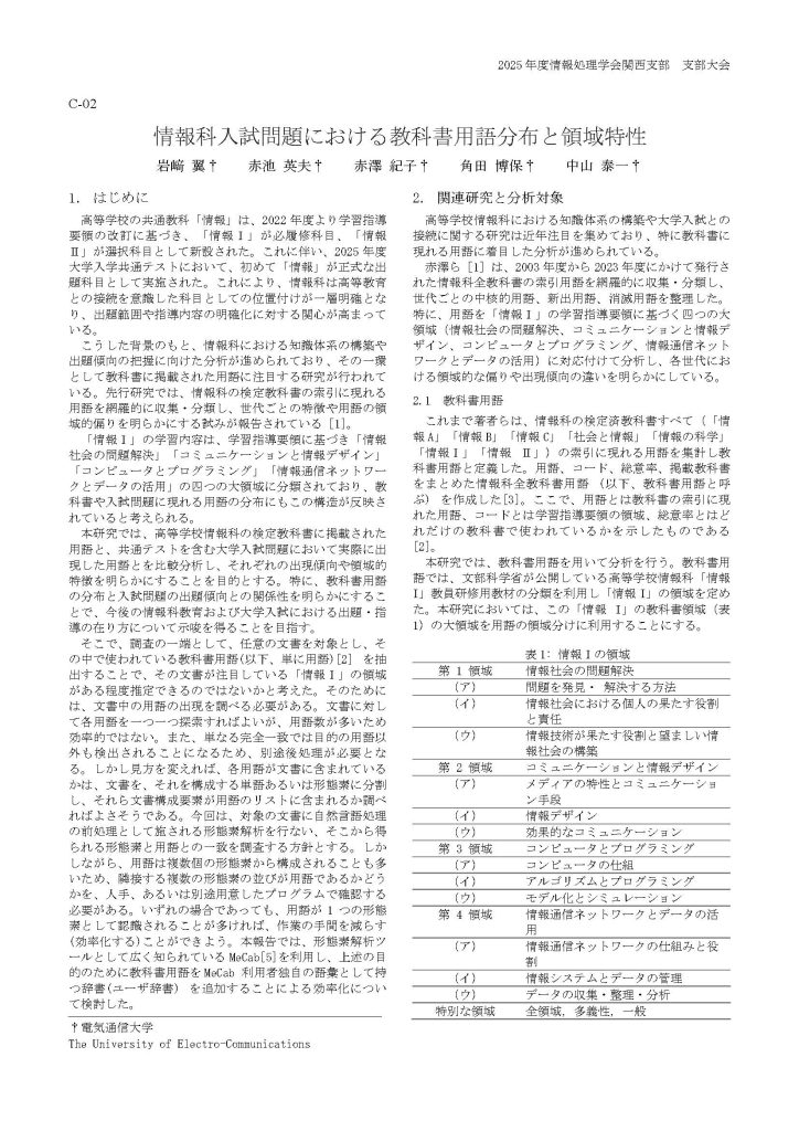 https://www.ipsj.or.jp/annai/committee/education/KENSHU2025.html[7] 情報処理学会:教科「情報」の入学試験問題って?