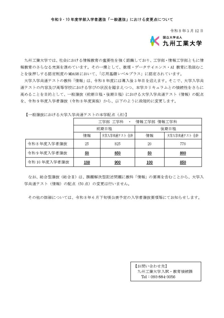 令和9・10年度学部入学者選抜「一般選抜」における変更点について
