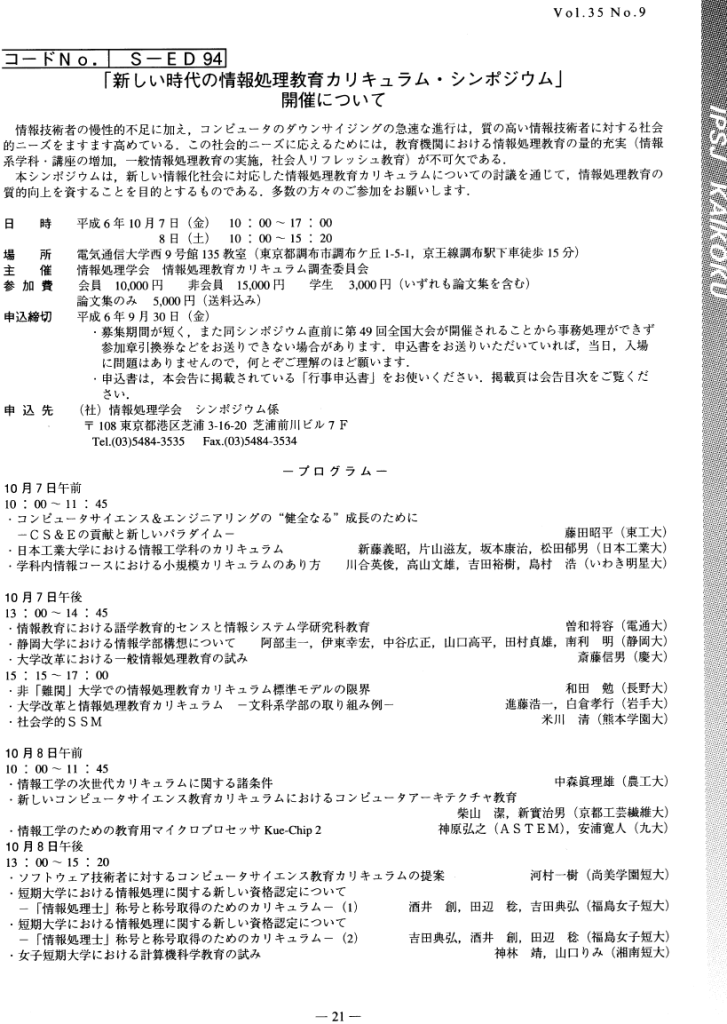 (情報処理, Vol.35, No.9, 会告21 (1994).)